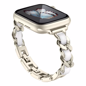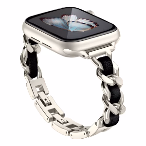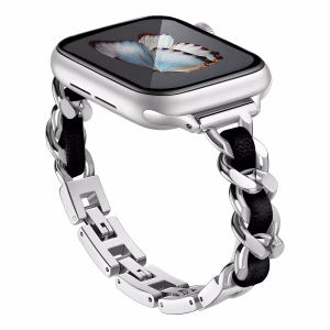 Oui, ce bracelet Apple Watch en acier inoxydable à maillons chaîne et cuir tressé est compatible avec toutes les Apple Watch de 38 mm à 49 mm.